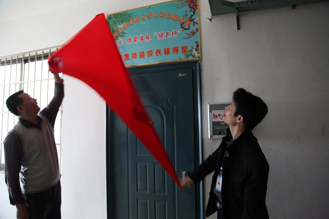 龙文和唐吉平一起为特色成长辅导室揭牌。(周文娟)