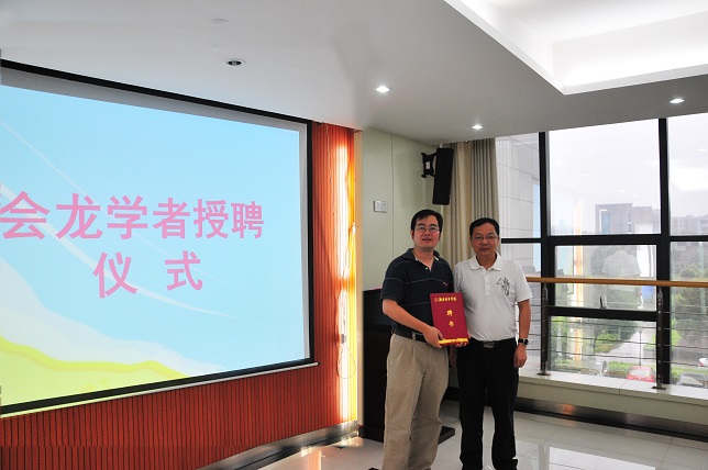 首批会龙学者代表杨小平和褚玉明教授在会上分别讲了话,介绍了他们担任会龙学者两年来的工作情况和感受。