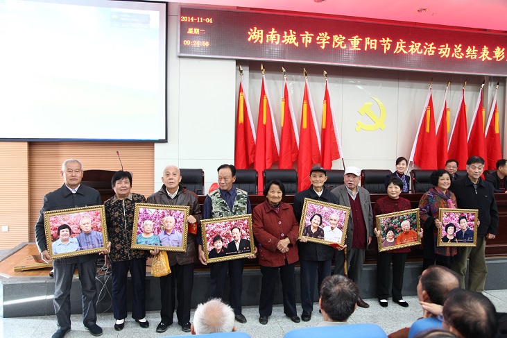 (本网讯)114日,离退休工作处负责组织举行了学校庆祝重阳节系列活动。上午9点,庆祝2014年重阳节暨表彰大会在图书馆报告厅举行。学校党委书记李建华,纪委书记、工会主席杨斌、益阳市老干部局副局长蔡志强、学校正厅级督学范志超、副厅级督学曹太康以及办公室、组织部、宣传部、教务处、团委、数学与计算学院等部门负责人,离退休老同志代表200余人出席大会。会议由杨斌主持。