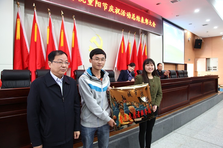 来自数学与计算科学学院的青年学生刘文晶代表青年志愿者祝贺老同志节日快乐,感谢老同志长期以来对青年学生成长给予的关爱和教育。她呼吁广大青年志愿者携起手来,激扬青春,奉献真情,投身到为老同志服务、为全校师生服务、为社会服务的公益活动中,为构建和谐城院贡献力量。