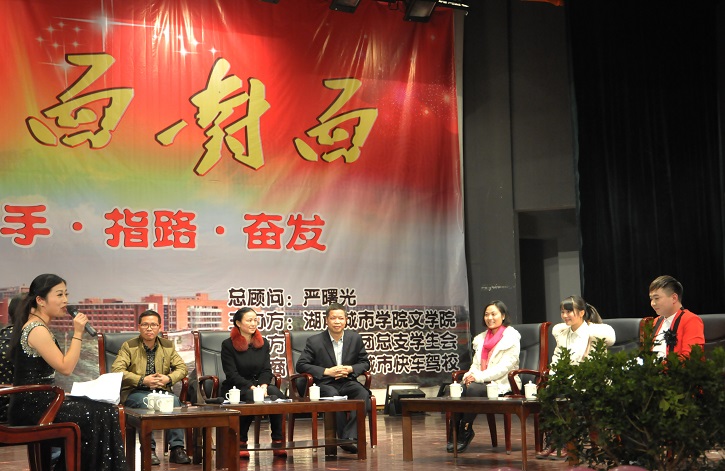 臧远科长期从事教育研究工作,在各类报刊发表多篇通讯报道,出版新闻报道专集,他结合教育管理部门工作实际分析讲解了当今教育的发展动态;唐文高前后从事过中学教师、益阳日报记者、市委常委秘书等职,他以自己的亲身经历鼓励大家如何在平凡的岗位上做出不平凡的业绩:“一要抓住机会;二要认真对待每一份工作;三要不放弃梦想”;丁春梅则以自己二十四年如一日的坚守诠释了一位人民教师的追求与信仰:“工作虽然辛苦,但是桃李满天下的成就感让我的生命变得充实而有意义”。整个见面会让在场同学受益匪浅。