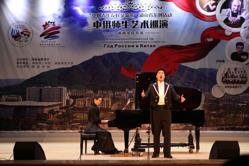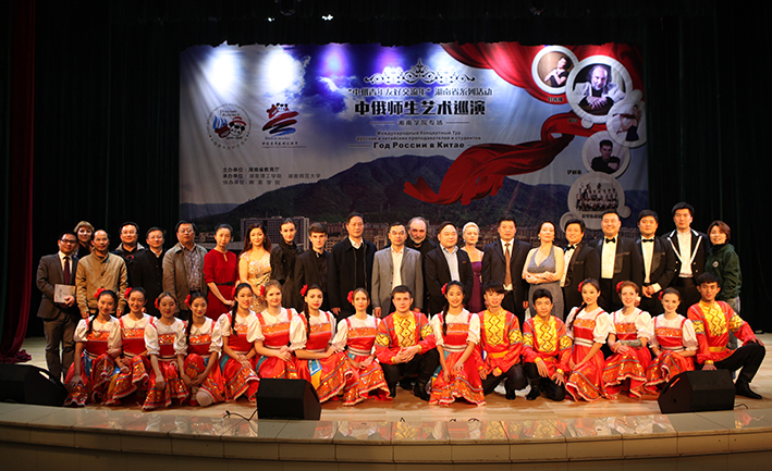 (本网讯)近日,由湖南省教育厅主办,2014-2015“中俄青年友好交流年湖南省系列活动——中俄师生艺术巡演历时两周,分别在湖南师范大学、湘南学院、湖南人文科技学院、吉首大学进行了四场音乐会演出,省教育厅党组成员、副厅长邹文辉,省教育厅国际交流处处长王红冰等嘉宾出席并观看演出。