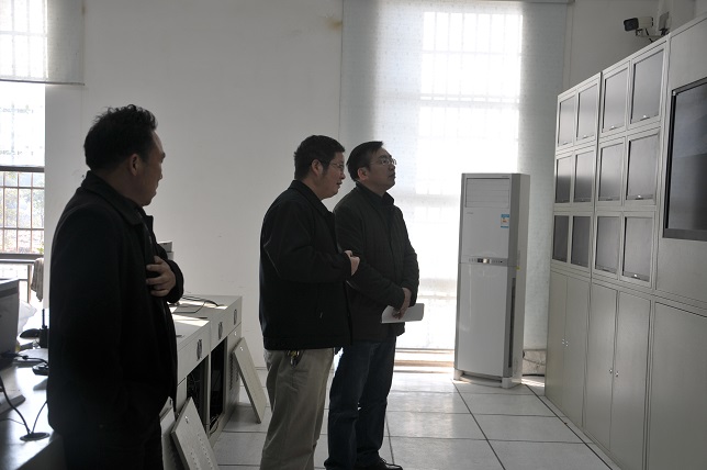 巡考人员在监控室巡视