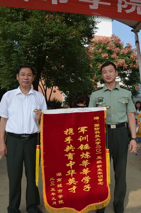 丁亮中向国防科技大学赠送锦旗