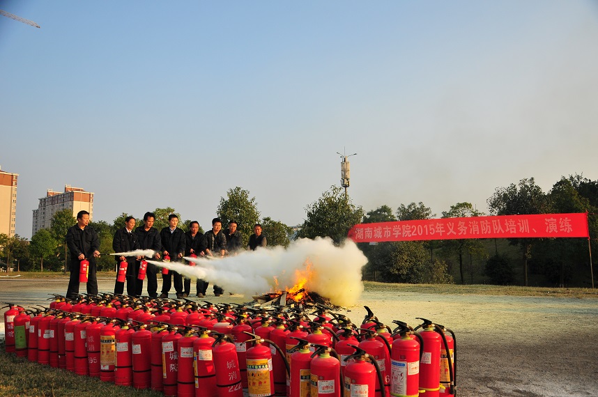 在第二田径场,学校义务消防队16名队员以及图书馆、食堂、超市部分员工接受了专门的消防知识培训和灭火演练。
