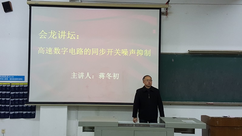 (本网讯) 1125日晚 ,会龙讲坛第二讲在一教学楼204教室举行。通信与电子工程学院副院长 蒋冬初 博士受邀为学校师生做题为“高速数字电路的同步开关噪声抑制”的学术讲座,宣传统战部部长陈国民主持讲座。