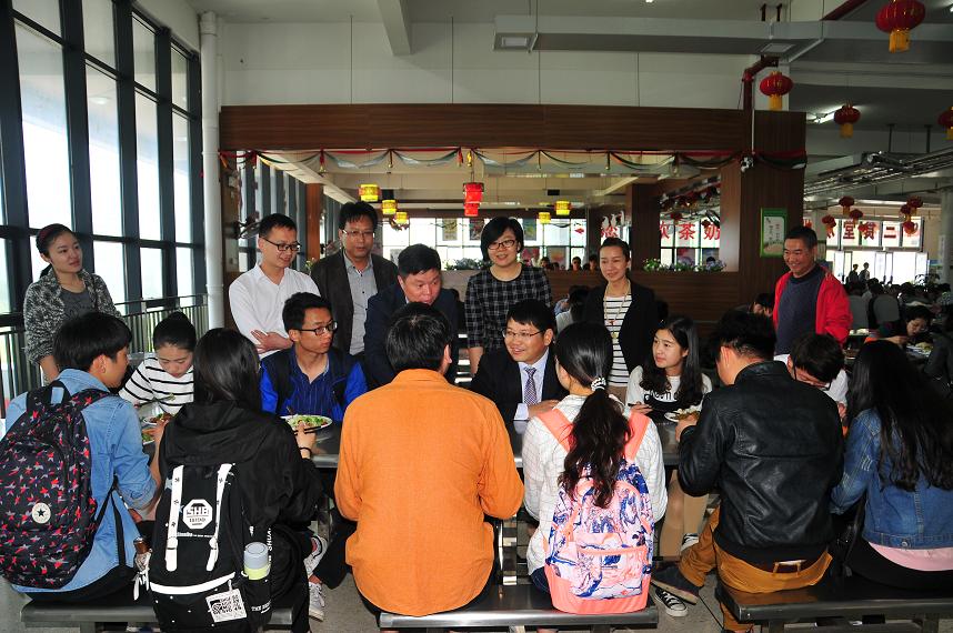 (本网讯)4月13日中午,学校党委书记罗成翼在党政办、基建与后勤管理处、团委等部门主要负责人陪同下,深入学校食堂了解学生就餐情况,并在第三食堂与学生共进午餐。