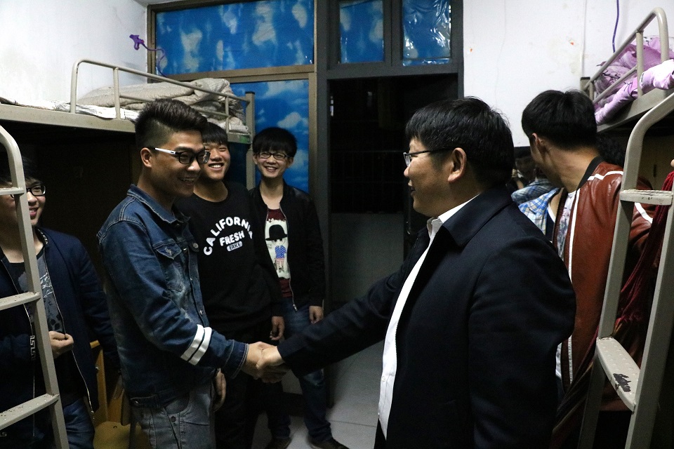 罗成翼对学生生活环境非常关注,他走访了1217183栋学生公寓,与同学们进行了零距离交流。在12栋,他详细地了解了同学们在生活费用、伙食质量、热水供应等方面地具体情况;在17栋,他询问了同学们在学习、生活中遇到的困难,要求随行的相关部门给予解决;在18栋,他对高层电梯公寓的基本情况进行了了解。他还与2015级的同学分享了自己的学习经验:“在大学里,学习是最重要的,要有正确的学习态度和科学的学习方法。同学们要掌握每个年级的学习侧重点,大一时,要特别注重基础;在努力学习的同时也要学会劳逸结合,锻炼好身体,做到身心协调发展。