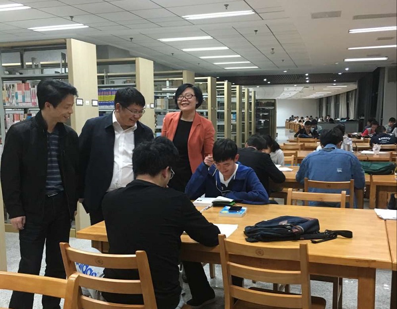 (本网讯)419日晚8点至10点,学校党委书记罗成翼来到逸夫图书馆、教学楼、学生公寓、大学生心理健康教育中心、学生工作部(处)、校团委办公场所以及在建的大学生活动中心进行走访调研并与学生亲切交流。学工系统相关负责人以及校团委、学生会主要学生干部参与了调研。
