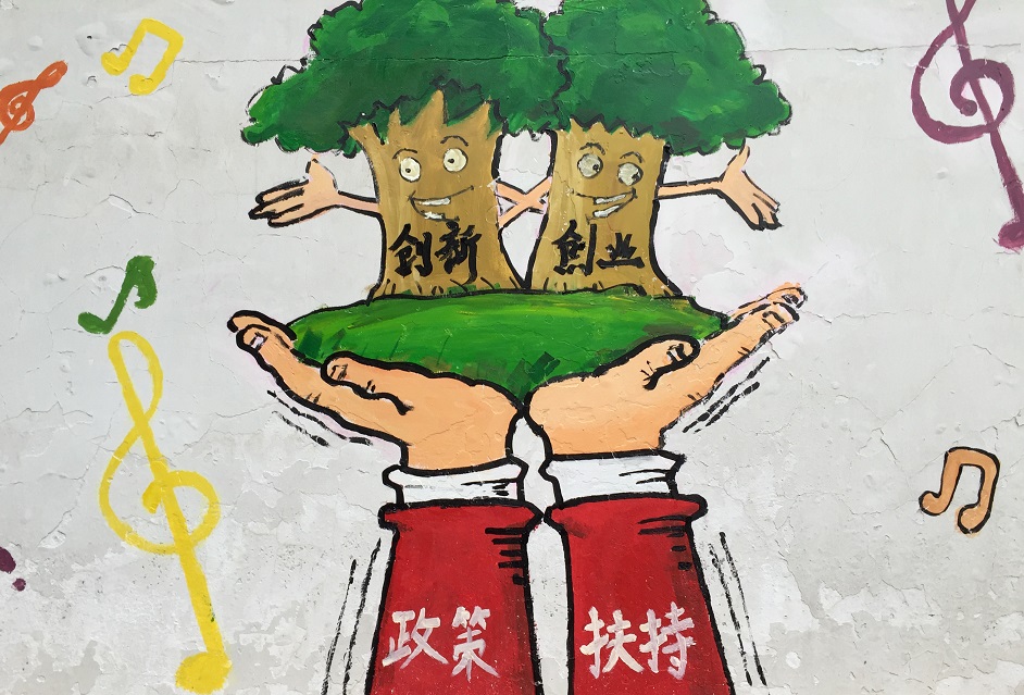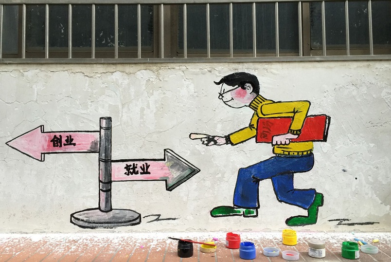 聚焦“大众创业 万众创新” 志愿者“发奋涂墙”