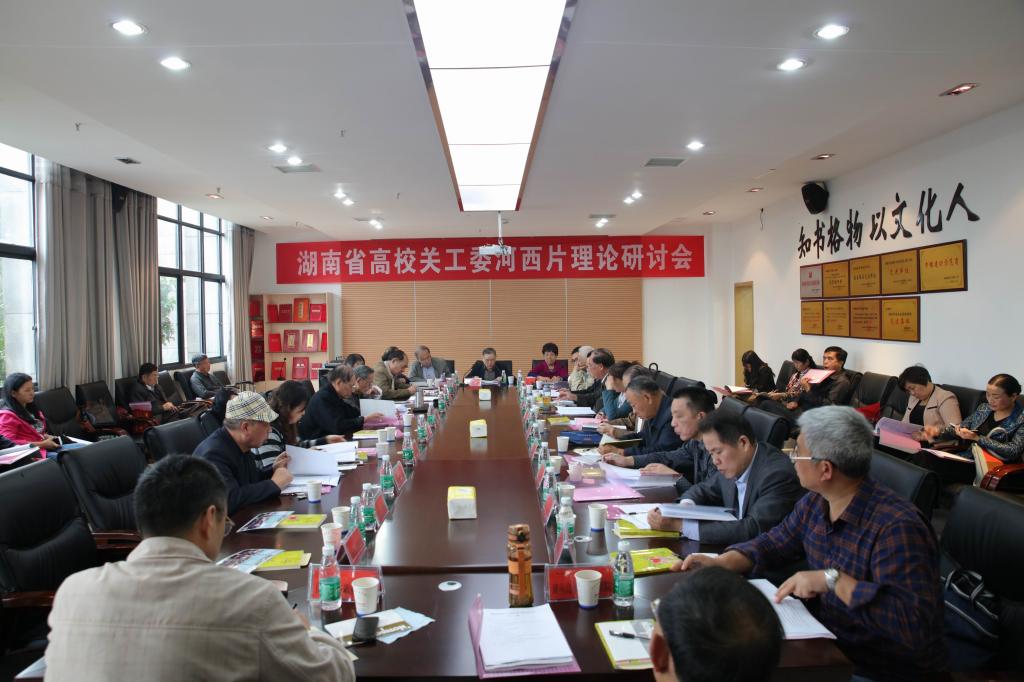 (本网讯)5月20日,湖南省高校关工委长沙河西片2016年理论研讨会在我校图书馆会议室举行。省教育厅关工委副主任李洪基、孔枊华莅临会议,湖南省高校关工委长沙河西片中南大学、湖南大学、湖南师范大学等20余所高校关工委的40多名代表参加了会议。会议就新形势下如何加强高校关工委工作的长效机制建设进行研讨、交流。会议由片组长单位中南大学关工委常务副主任龚竹清主持。