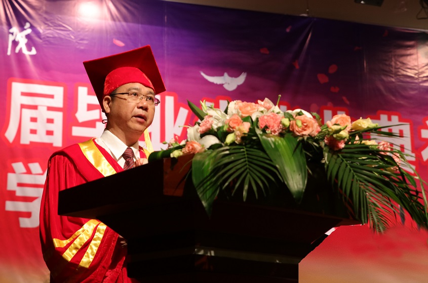 未来的路,希望你们艰苦奋斗,心系家国。艰苦奋斗是中华民族的传统美德,是具有永恒意义的精神财富,无论在过去、现在还是将来,都永远不会因时代的变化而过时。古今中外,凡成就大事业,做出大贡献的人,无不是踏着一条艰苦努力、积极拼搏的道路走向成功的。对大家而言,继承和发扬艰苦奋斗的作风,就是要为实现伟大的中国梦而努力奋斗。新东方教育集团创始人俞敏洪先生曾说过:真正的精英一定是具有家国情怀的人。希望大家在艰苦奋斗的路途上,多一些“家国情怀”,将个人奋斗与人生追求融入中国梦的民族理想,与国家和民族的发展同向同行,充分施展你们从母校获取的应用技能,积极投身“中国制造”向“中国创造”的转型发展,在各自的岗位上勤奋工作、建功立业、报效祖国。