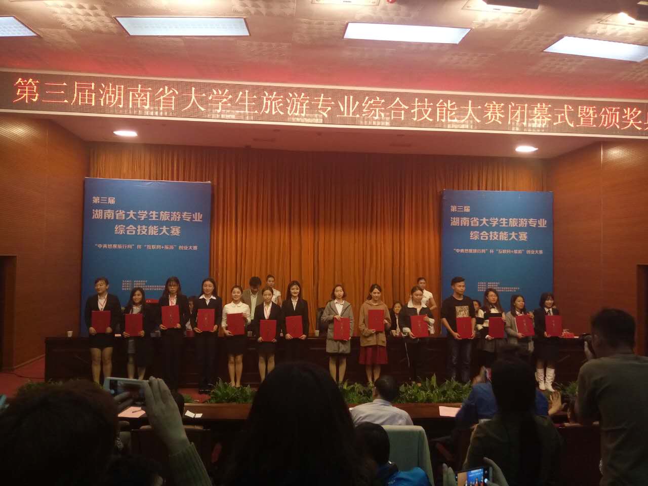 (本网讯)2016年11月6日,在由湖南省教育厅主办、湖南商学院承办的湖南省第三届大学生旅游专业综合技能大赛中,我校商学院旅游管理专业参赛选手发挥出色,荣获两个二等奖和“优秀组织奖”。