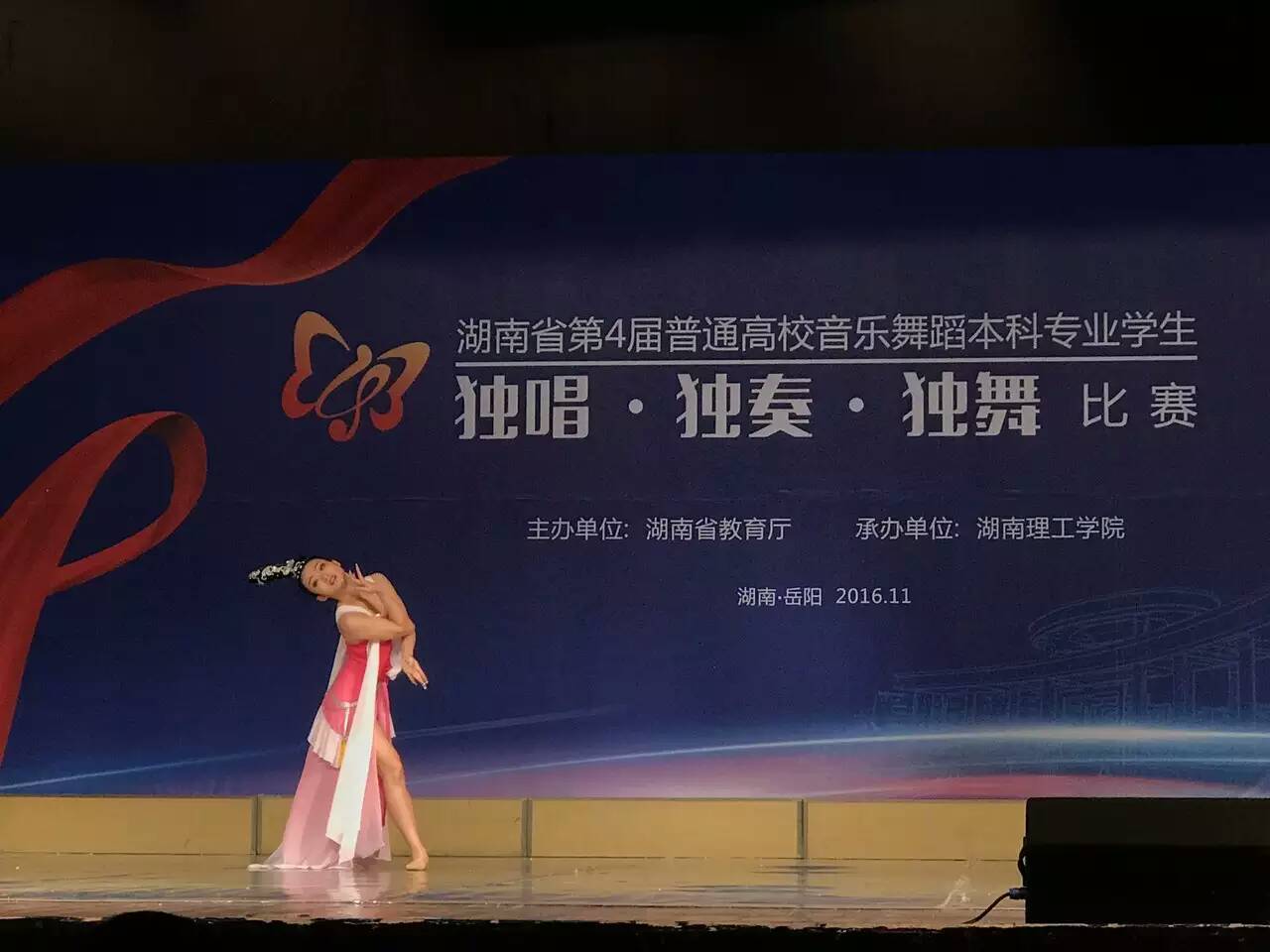 (本网讯)11月11日至13日,湖南省第四届普通高校音乐舞蹈本科专业学生独唱、独奏、独舞比赛在湖南理工学院举行。我校共揽获五个一等奖,三个二等奖和一个三等奖,总分仅次于湖南师范大学,排名第二,创历史最好成绩。