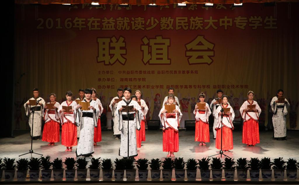 (本网讯)12月18日下午,2016年在益就读少数民族大中专学生联谊会在我校音乐厅隆重举行。联谊会由市委统战部、市民族宗教事务局主办,好博·(中国)手机网页版承办,湖南工艺美术职业学院、益阳医学高等专科学校、益阳职业技术学院协办,主题为“共同团结奋斗 共同繁荣发展”。益阳市委宣传部、市委统战部、市民族宗教事务局、市公安局、市教育局、市文体广新局以及四所高校相关负责人出席联谊会。