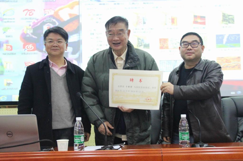 讲座之前,郑卫民宣读了我校聘请于希贤教授为客座教授的文件,汤放华为于希贤教授颁发证书和聘书。