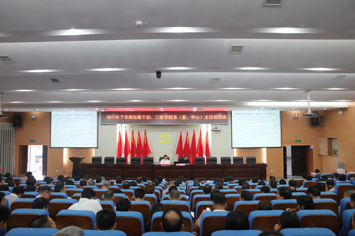 (本网讯) 9月1日至9月2日,我校举办了2017年下学期处级干部、二级学院系(室、中心)主任培训班。在家的校领导、处级干部、二级学院系(室、中心)主任参加了培训班。