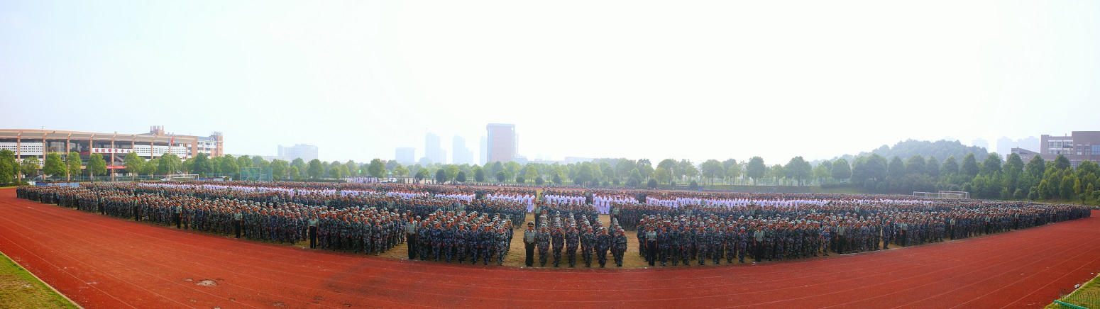 (本网讯)飒爽英姿秋点兵,激昂斗志展新颜。9月24日上午,2017级新生军训汇报表演暨总结表彰大会在田径场隆重举行。4500余名新生以挺拔俊俏的军姿、刚劲有力的步伐展示了他们飞扬的青春和蓬勃的热情。校领导罗成翼、李建奇、汤放华、郑卫民、谭献良以及相关处室、二级学院负责人在主席台观看了汇报表演。大会由校长李建奇主持。