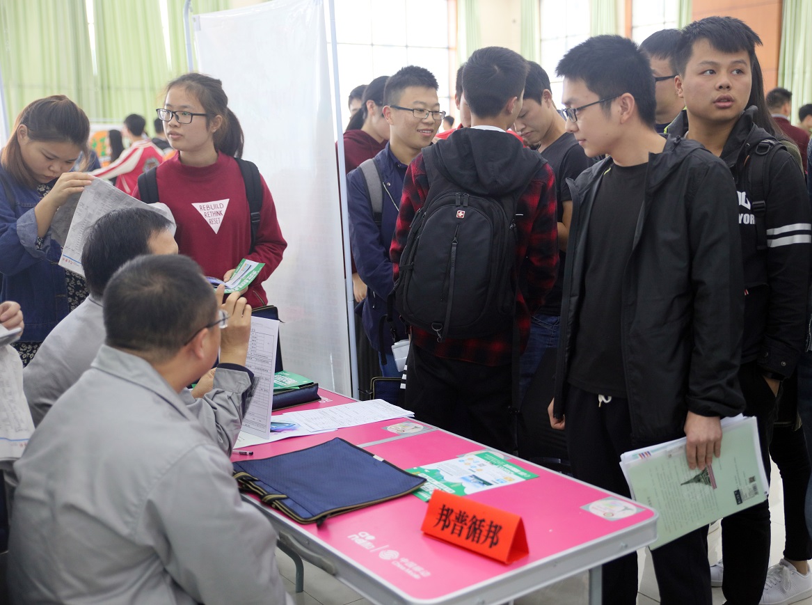 (本网讯)10月23日,“相约宁乡”工业企业专才招聘会暨长沙人才新政进校园活动好博·(中国)手机网页版专场宣讲会在学校学生活动中心举行。副校长郑卫民,宁乡市委组织部、人力资源和社会保障局相关负责人,招生就业处相关负责人以及近500名毕业生参加了宣讲会及现场招聘。