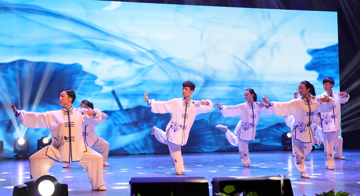随后,与会人员观看了由艺术学院、体育学院师生带来的极具中国文化特色的文艺表演。优美的民族舞蹈、悠扬的器乐合奏、精彩的武术气功、魅力无穷京剧、神秘的傩舞获得访华团热烈的掌声。节目最后,访华团即兴上台表演了合唱《He is Good》。