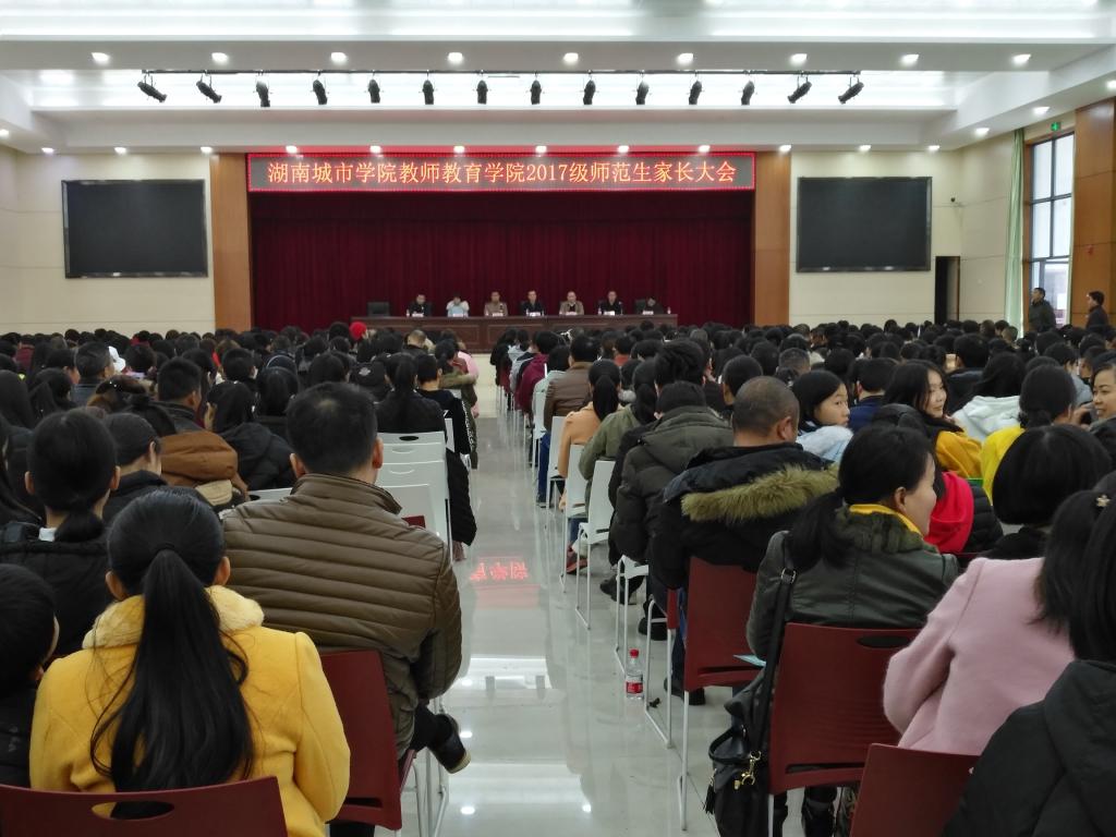 (本网讯)2017年农村中小学教师公费定向师范生培养,是我校与益阳市人民政府校地合作的重要项目。为进一步做好公费定向师范生培养工作,让家长更全面了解自己孩子生活学习的情况,充分展示学校良好的校纪校风,122日下午,我校教师教育学院邀请600余名2017级师范生家长来校,举办“家校携手 共同托起孩子们的梦想”主题家长会。副校长雷存喜,招生就业处、教师教育学院相关负责人出席会议。会议在团委活动中心举行。