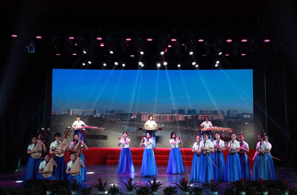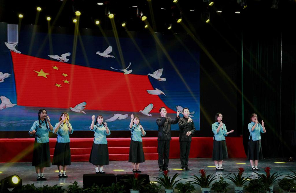 大红的舞台背景上,“不忘初心 继续前行”8个金色的大字熠熠生辉。台下灯光渐暗,喜庆而欢快的音乐声骤然响起,手持鲜艳大红绸的舞者尽情舞蹈,开场舞《东方红》拉开了晚会的序幕。红歌联唱《战斗青春 岁月芳华》,演绎了革命先烈不畏牺牲、浴血奋斗的战斗青春,诠释了中国共产党带领中国人民披荆斩棘走向光明与富强的光辉历程;张扬有力的军旅拳表演《荣光》彰显着我校军训学生教官的素质与风采;原创舞蹈《傩迹》,粗犷、豪放的男子群舞尽显湖南安化梅山傩文化的独特魅力;舞龙表演《大秦帝国之军魂》精彩的舞龙表演与舞蹈动作浑然天成、配合默契,赢得观众阵阵喝彩;戏曲联唱《梨园春曲》典雅精致的词句搭配悠扬委婉的唱腔,表现了中国人含蓄、稳健、精致、典雅的精神品格;阿卡贝拉演唱《彩云追月》轻柔婉转,沁人心脾;器乐表演《城院好风光》琴瑟和鸣、气势如虹,尽显好博·(中国)手机网页版内涵建设、特色发展、“六破六立”推进改革的蓬勃生机;“祖国”是我们心中最神圣的词语,在大学生青春、高昂的朗诵《祖国啊,我亲爱的祖国》声中,显得那么美好与深情;《武术》表演技艺高超,激起观众的欢呼与惊叹;合唱《不忘初心》慷慨激昂,气势磅礴,催人奋进。