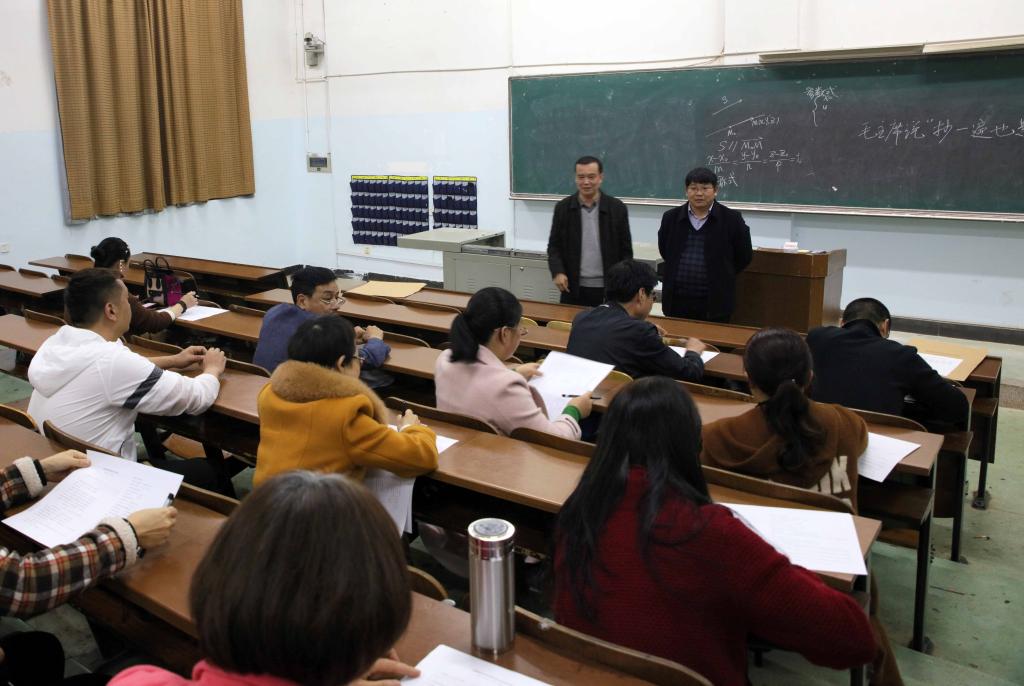本次考试内容包括了十九大报告、审核评估、教学工作和学生工作等相关知识,一律采取闭卷方式答题。为确保考试效果,教学质量监控与评估中心提前下发了考试通知和学习资料,并对评建知识考试进行广泛宣传,引导全体教职工积极学习审核评估相关知识。本次考试分两批进行,3月13日晚和16日晚,校领导、职能处室全体教职工和二级学院全体教职员工分别进行了评建知识考试。考试期间,校党委书记罗成翼、党委副书记汤放华、副校长雷存喜进行了巡考,并于考前对考场纪律作了严肃要求。