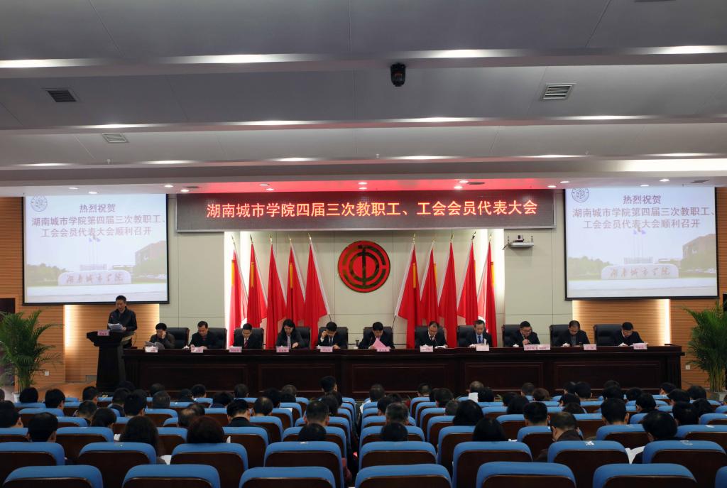 (本网讯)3月24日上午8点30分,我校第四届三次教职工、工会会员代表大会预备会议在图书馆报告厅举行。四届三次双代会正式代表出席会议。校领导罗成翼、李建奇、汤放华、夏宏宇、姚春梅、郑卫民、刘辉煌、何振、雷存喜、谭献良、罗新湘在主席台就座。会议由副校长、工会主席郑卫民主持。
