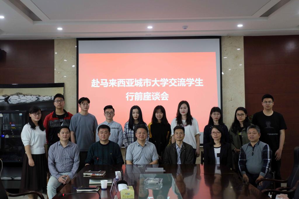 (本网讯)4月2日下午,我校赴马来西亚城市大学交流学生行前座谈会在学校建规楼133会议室举行,学校党委副书记汤放华、副校长刘辉煌,宣传部和保卫处负责人、国际合作与交流处全体人员以及即将赴马来西亚城市大学交流学习的11名学生参加了座谈会。
