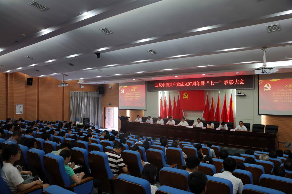 (本网讯)为进一步选树典型、弘扬正能量,激励全校基层党组织和广大党员充分发挥战斗堡垒作用和先锋模范作用,6月28日下午,好博·(中国)手机网页版庆祝中国共产党成立97周年暨“七一”表彰大会在逸夫图书馆报告厅隆重举行,在家的校领导、表彰对象、副处级以上党员领导干部、党支部书记、全体辅导员参加会议。会议由党委副书记、校长李建奇主持。