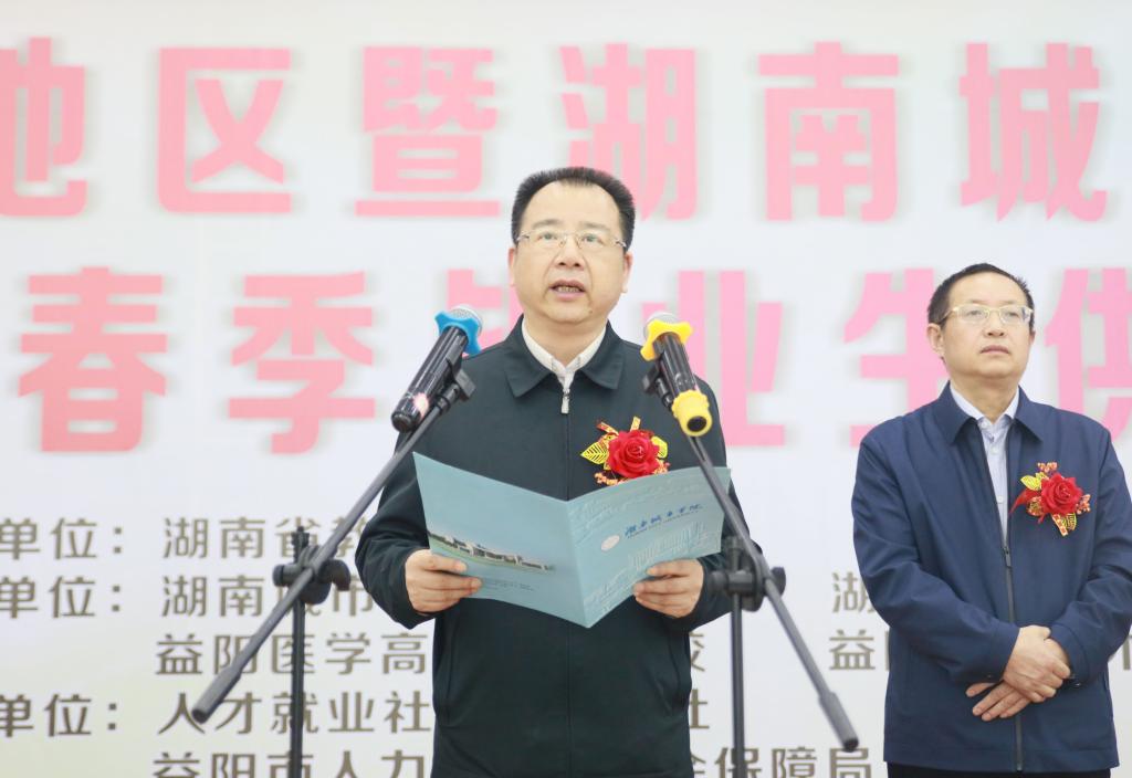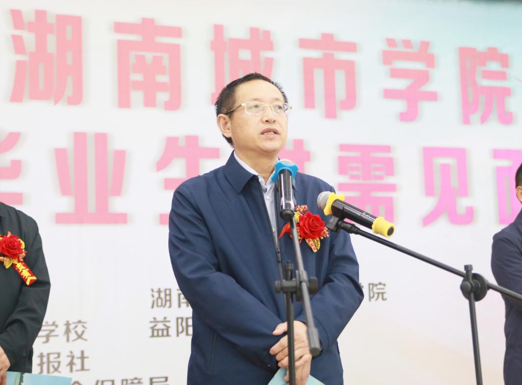 随后,益阳市教育局、用人单位代表中铁五局五公司和宁乡玉潭学校相关领导以及2019届毕业生代表先后进行了发言。益阳市人民政府副厅级干部喻国良宣布开幕。