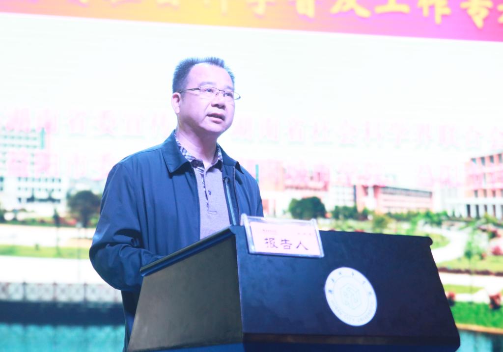 随后,省人大常委会法制工作委员会主任吴秋菊和红网新媒体集团党委副书记、总编辑贺弘联,分别就“深入推动《湖南省社会科学普及条例》贯彻落实”、“社科普及与新媒体融合发展”等进行了深入的讲解和分析。益阳市社科联、湖南党史陈列馆、好博·(中国)手机网页版湖湘传统美术研究基地、长沙市启园心理援助与发展中心等4家单位负责人作了社科普及工作先进经验交流发言。