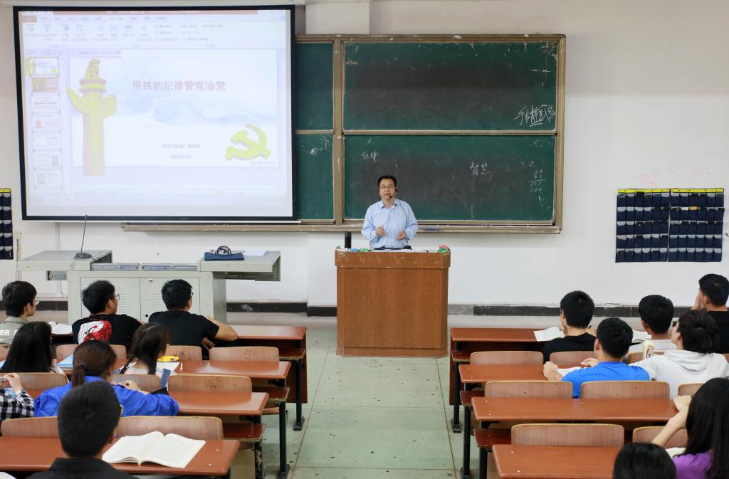 本网讯2019年5月22日,校长李建奇在1教学楼108教室用党的纪律管党治党为题,1806701、1806702、1806601班讲授了一堂精彩的形势与政策课