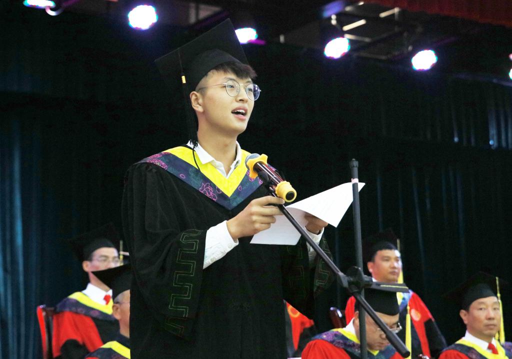 土木工程学院敬涛同学作为毕业生代表发言,他表达了对母校的感激之情,表示将不忘初心,逐梦前行,奋斗不息,努力不止,在奉献社会中成长自己,实现自己。