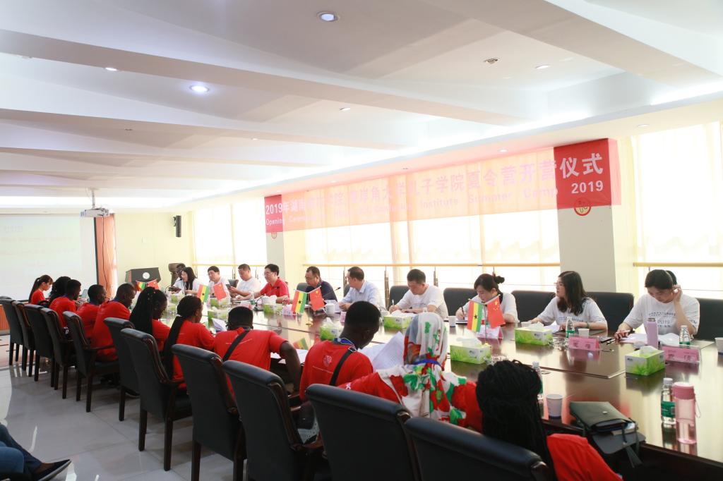 (本网讯)2019年8月2日下午,好博·(中国)手机网页版/加纳海岸角大学孔子学院“华夏·洞庭”——中国文化夏令营开营仪式在办公楼一会议室举行。校长李建奇出席开营仪式并发表讲话,参加开营仪式的有来自加纳海岸角大学孔子学院的全体营员,出席开营仪式的还有学校副校长雷存喜,加纳海岸角大学孔子学院中方院长、学校国际交流处、保卫处、基建和后勤管理处、人文学院等各单位的负责人,老师以及学生志愿者代表。开营仪式由雷存喜主持。