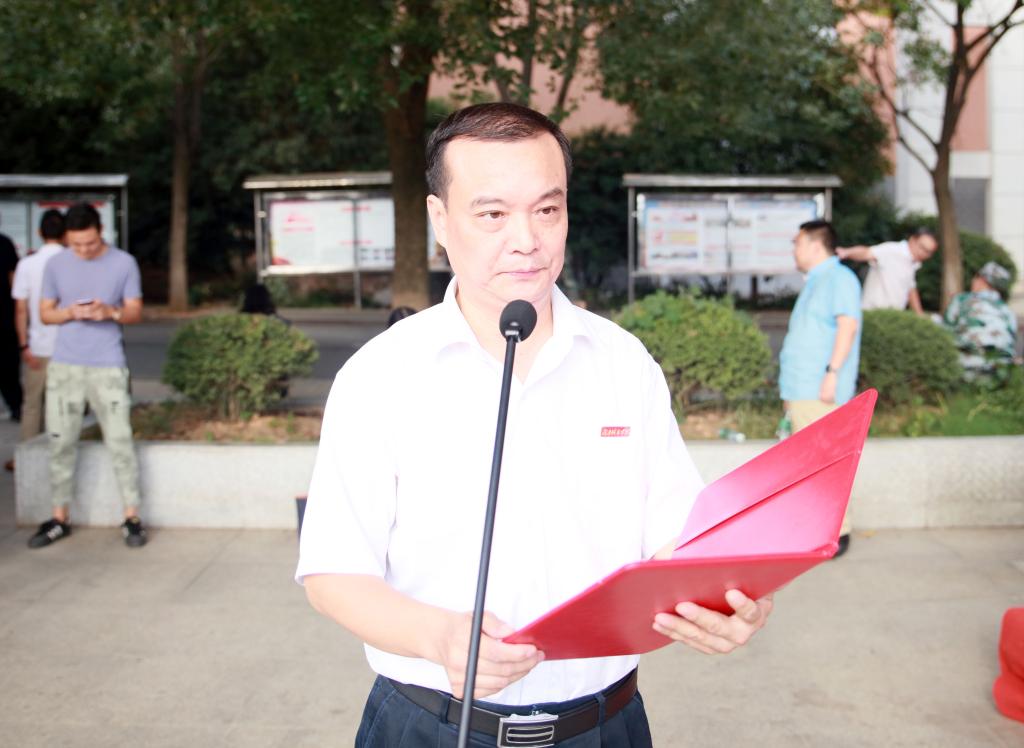 大会在庄严、雄壮的国歌和校歌声中拉开帷幕。党委书记罗成翼检阅了由2019级参训新生组成的方队。