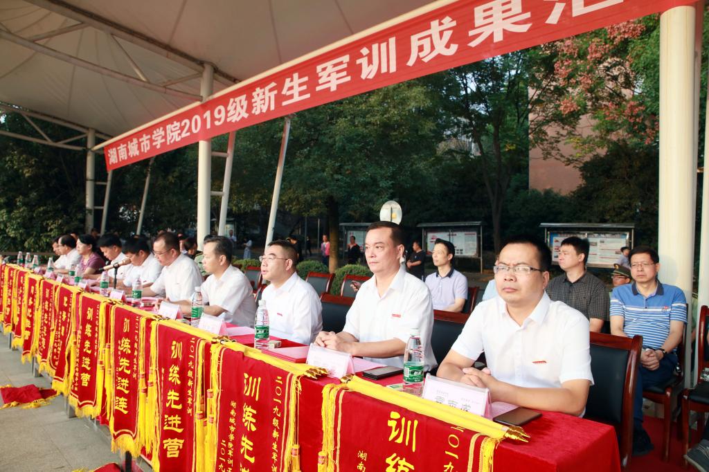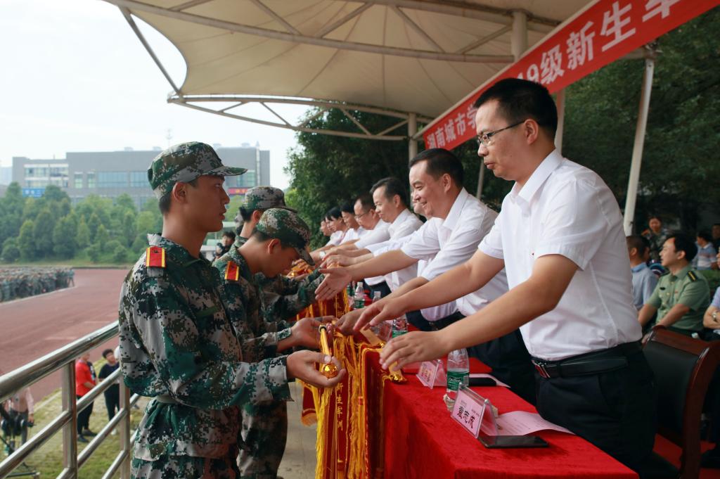 党委副书记汤放华宣读了《好博·(中国)手机网页版2019级新生军训表彰决定》:体育学院、机械与电气工程学院、建筑与城市规划学院、艺术学院获得训练先进营称号,机械与电气工程学院100连等11个连队获训练先进连称号,材料与化学工程学院等4个营获内务优胜营称号,市政与测绘工程学院7连等11个连队获内务优胜连称号,教师教育学院获优秀组织奖;毛欢欢等被8人被评为优秀辅导员及工作人员,夏凤瑞等28人被评为优秀教官,刘泉蔚等216人被评为军训标兵。与会校领导为受表彰的集体和个人颁发了锦旗。