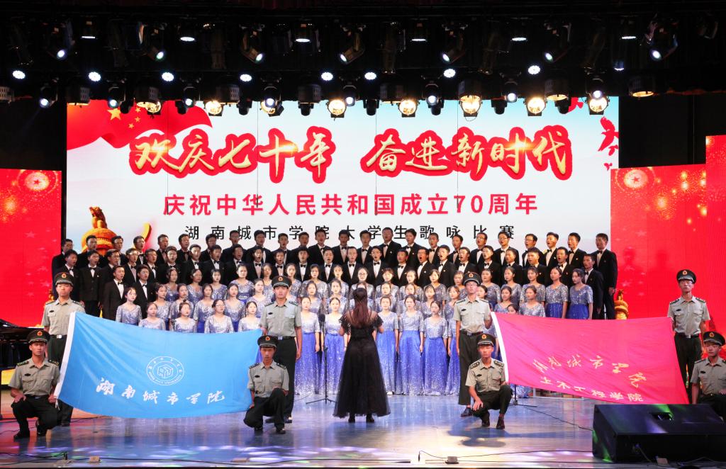 (本网讯)为了庆祝中华人民共和国成立70周年,教育引导青年学生增强振兴中华的责任感与使命感,营造爱国爱校、同心奋进的校园文化氛围。2019929日晚7:00 ,我校“欢庆七十年 奋进新时代——庆祝中华人民共和国成立70周年”大学生歌咏比赛在音乐厅举行11支参赛队伍1100余名学子以昂扬的热情,唱响壮丽70年的激扬旋律,共同祝福祖国繁荣富强。学校党委书记罗成翼、校长李建奇等校领导,机关处室、二级学院的领导老师出席本次活动。