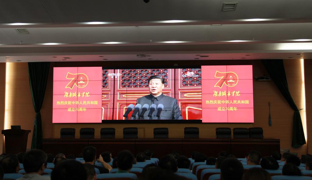 (本网讯)“长安街上,三军列阵,铁甲生辉……”2019年10月1日上午,好博·(中国)手机网页版图书馆报告厅内传出央视主播雄浑有力之声。这是好博·(中国)手机网页版正在组织部分师生收看新中国成立70周年阅兵活动,其余师生也通过集中收看或者手机、电脑、电视等多种方式进行了收看。收看结束后,广大师生将千言万语,都化作真诚、质朴、美好的祝福:祝愿祖国母亲生日快乐,中国万岁!