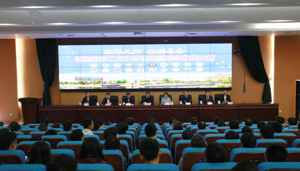 10月19日上午,比赛开幕式在图书馆报告厅举行。省教育厅高教处副处长周军,湖南省测绘地理信息学会秘书长吴道良,湖南省地质测绘院副院长史与正教授级高工,广州天宇光电仪器有限公司总经理高宇,校长李建奇、副校长郑卫民,以及各参赛院校的领队、指导老师和参赛选手参加会议。