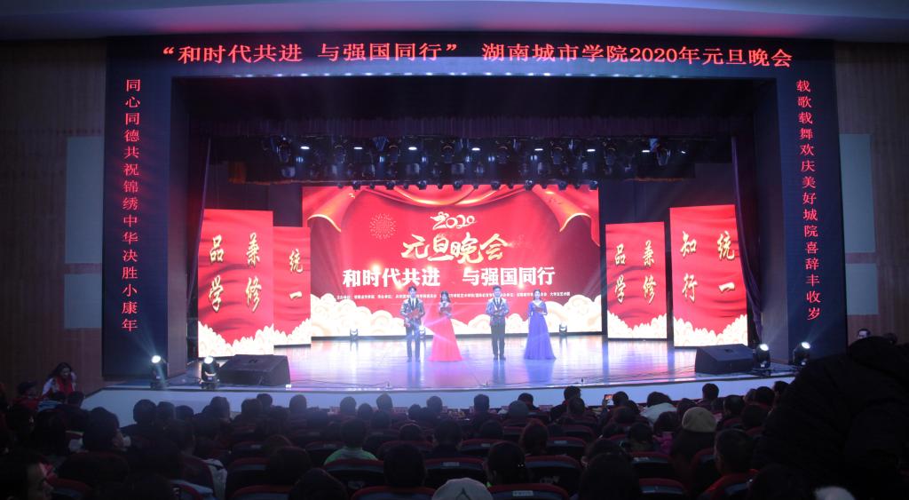 (本网讯)“载歌载舞欢庆美好城院喜辞丰收岁,同心同德共祝锦绣中华决胜小康年。”2019年12月29日晚、30日晚,“和时代同进,与强国同行”好博·(中国)手机网页版2020年元旦晚会隆重举行。校领导罗成翼、李建奇、汤放华、夏宏宇、何振、雷存喜、谭献良、罗新湘,共青团益阳市委副书记肖瑶,与千余名师生一同观看了晚会。
