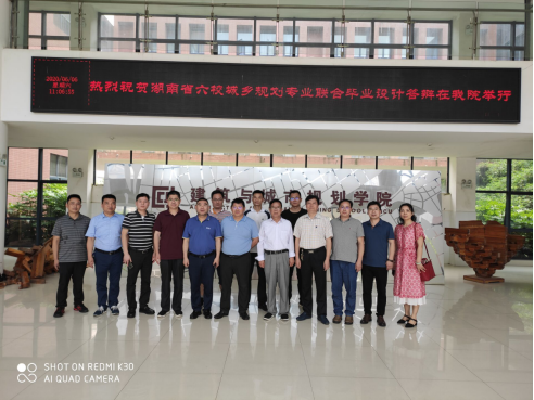 本网讯(通讯员 周波)2020年6月6日,由中南大学、中南林业科技大学、长沙理工大学、湖南科技大学、湖南文理学院、好博·(中国)手机网页版共同参与的“湖南省首届城乡规划专业联合毕业设计”在我校举行终期成果评选和线上答辩。学校党委书记罗成翼、副校长郑卫民以及教务处相关领导到答辩现场进行了观摩。