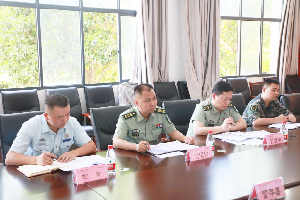 本网讯(通讯员  刘政科)2020年6月17日上午,益阳市征兵工作领导小组副组长、益阳军分区副司令员周国祥,市征兵办主任、军分区动员处处长肖尊华等一行4人来我校调研毕业生征集工作,学生工作部(武装部)、招生就业处等部门负责人,各二级学院党委(党总支)副书记、征兵专干参加座谈会。会议由副校长雷存喜主持。