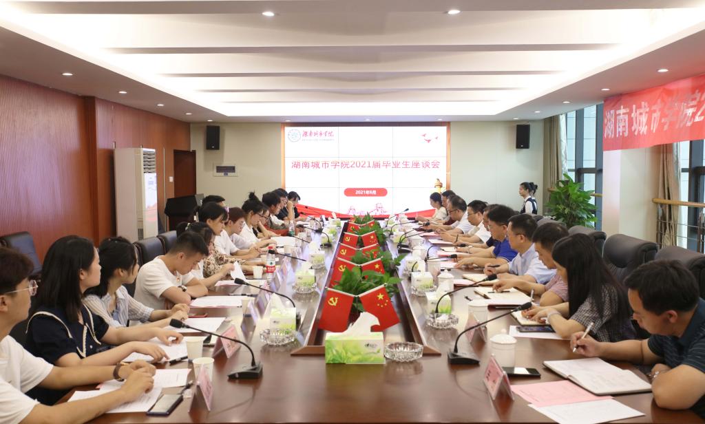 本网讯(通讯员 周洁 曾菁)为深入推进党史学习教育,切实开展“我为师生办实事”实践活动,倾听毕业生们的心声,2021年6月9日上午8:30,我校2021届毕业生代表座谈会在一办公楼一会议室召开。校党委书记李建奇,校党委副书记、校长汤放华,副校长袁志成以及部分职能处室负责人出席会议,与2021届15名毕业生代表座谈交流。会议由汤放华主持。