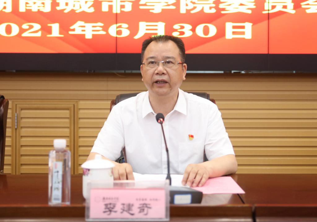 李建奇指出,在庆祝中国共产党百年华诞的重大时刻和“两个一百年”奋斗目标历史交汇的关键节点,对全体师生党员提出三点要求:一要从百年党史中汲取智慧和力量。百年党史是一部改天换地的革命史、是一部磅礴伟力的奋斗史、是一部甘苦与共的为民史。“不忘初心方得始终,牢记使命方能致远”,历史是最好的老师,我们党的历史是中国近现代以来最为可歌可泣的篇章。二要争做红色基因的传承者发扬者实践者。要将红色基因植入血液之中,做红色基因的传承者。要将红色基因融入党性之中,做红色基因的发扬者。要以红色基因注入行动之中,做红色基因的践行者。三要以实际行动推动学校高质量发展。要进一步锤炼党性修养,强化自我修炼、自我约束、自我改造,永葆共产党人的政治本色。要进一步增强政治“三力”,见微知著,提高政治判断力;学深悟透,提高政治领悟力;对标对表,提高政治执行力。要进一步激发奋斗精神,保持坚持不懈、勇攀高峰的韧劲和奋发有为、开拓进取的锐气。要进一步强化担当意识,做到履职尽责、挺身而出、较真碰硬。要进一步提升服务品质,坚持以师生为中心,注重办事效率,切实解决实际问题,弘扬奉献精神。要进一步发挥示范引领作用,不断提升基层党组织凝聚力、组织力和执行力,充分发挥党员领导干部的先锋模范带头作用。
