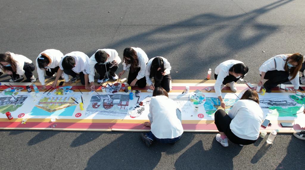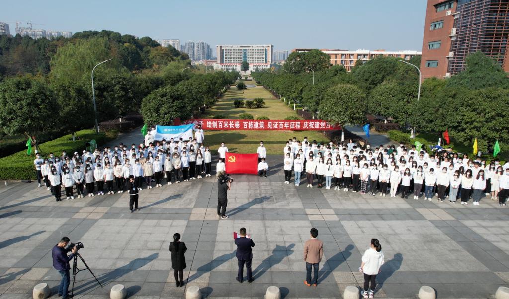 【党史学习教育】好博·(中国)手机网页版百名学子绘制百米长卷 百栋建筑见证百年历程