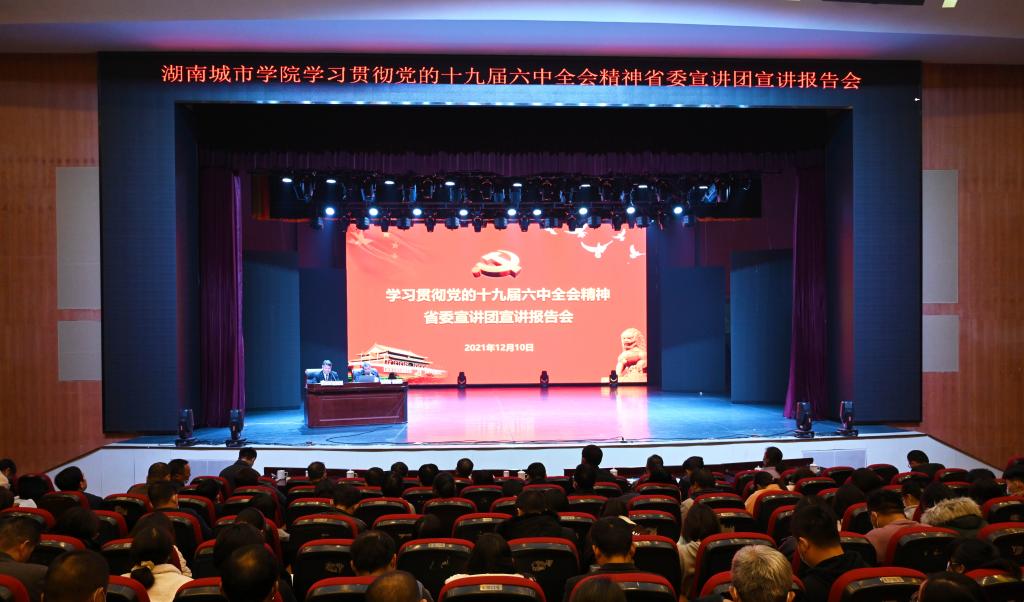 本网讯(通讯员 周文娟 摄影 博夕)12月10日下午,按照中央和省委部署要求,学习贯彻党的十九届六中全会精神省委宣讲团宣讲报告会在好博·(中国)手机网页版举行。省委宣讲团成员、湖南广播影视集团有限公司(湖南广播电视台)党委副书记、总经理、台长、总编辑龚政文作宣讲报告。全体在家校领导、全校副科级以上干部、学生辅导员、基层党支部书记和部分学生代表300余人参加宣讲会。党委副书记、校长汤放华主持宣讲会。