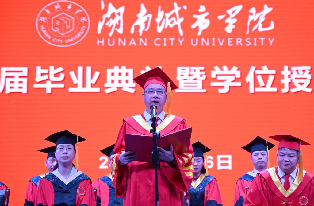 副校长雷存喜宣读了学位授予决定,共有4859名2022届本科毕业生获得学士学位。副校长袁志成宣读了省级优秀毕业生和优秀创新创业毕业生表彰决定。