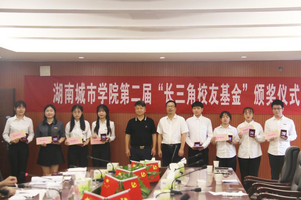 会上,袁志成宣读了我校第二届“长三角校友基金青蓝计划”入选者名单。2022年,我校共有44名学生成功被上海大学、中国矿业大学、苏州大学等长三角地区高校录取为硕士研究生,获得学校第二届“长三角校友基金”的奖励和支持。与会校领导为获奖者进行了颁奖。