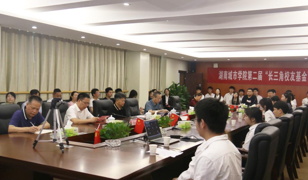 本网讯(通讯员 杨昌霞)2022年6月17日上午,我校第二届“长三角校友基金”颁奖仪式举行。本次颁奖仪式采取线上与线下相结合的形式进行,校长汤放华,副校长夏宏宇、袁志成,学生工作部、校友办负责人,各二级学院分管学生工作的副书记以及44位即将赴长三角攻读硕士研究生的同学参加线下主会场颁奖仪式;上海、浙江、江苏三地的近20名校友们参加线上会议。会议由夏宏宇主持。